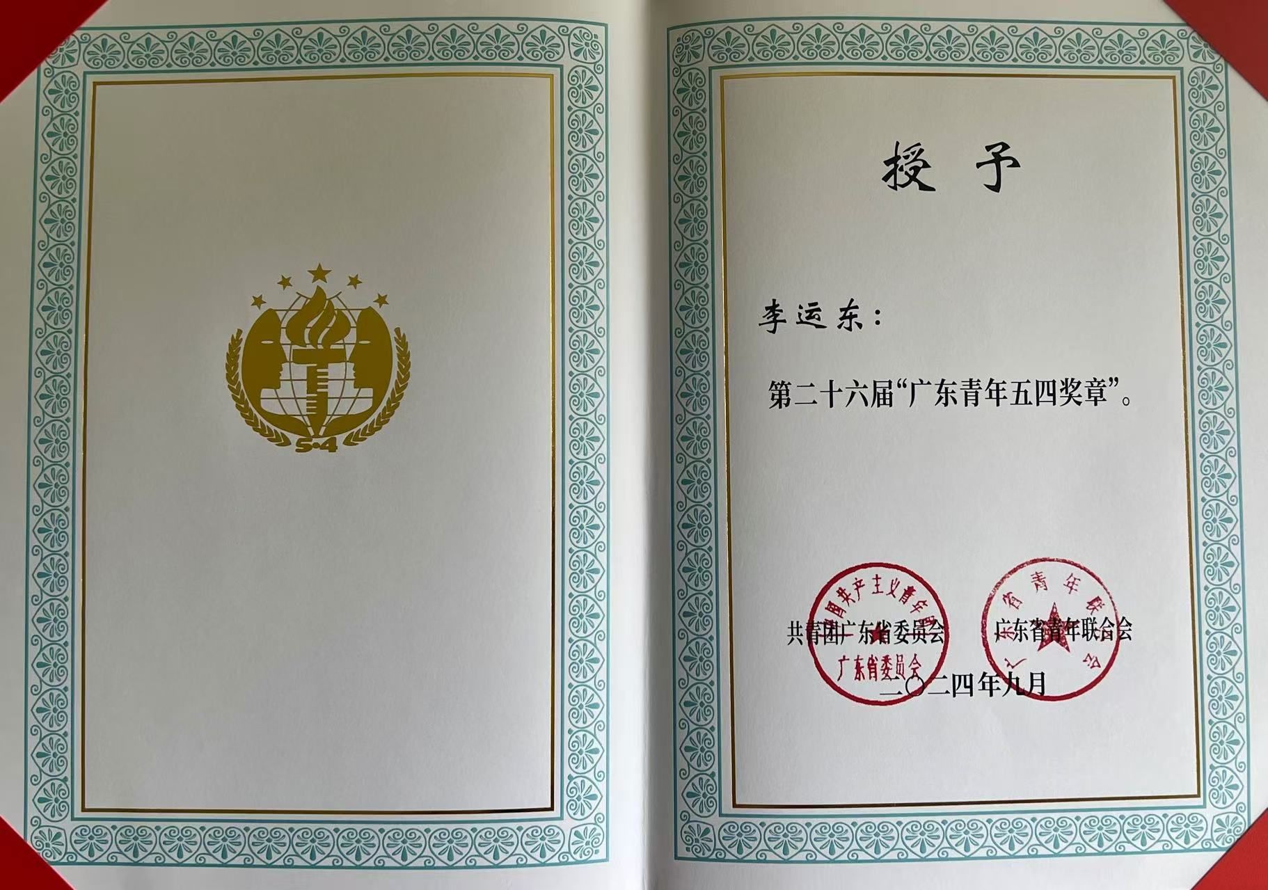 “广东青年五四奖章”是共青团广东省委员会、广东省青年联合会授予广东优秀青年的最高荣誉,旨在树立政治进步、品德高尚、贡献突出的广东优秀青年典型,反映当代广东青年的精神品格和价值追求。这是南海所首次获得“广东青年五四奖章”,这不仅是对李运东同志个人努力和付出的肯定,更是对以李运东同志为代表的南海所青年精神的赞誉。
