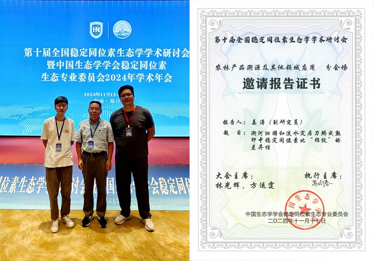 11月15日-18日,第十届全国稳定同位素生态学术研讨会暨中国生态学会稳定同位素生态专业委员会2024年学术年会在海南省海口市召开。环球360会员登录首席科学家、淡水渔业研究中心渔业微化学实验室杨健研究员,实验室姜涛副研究员、薛竣仁博士参加了此次大会。